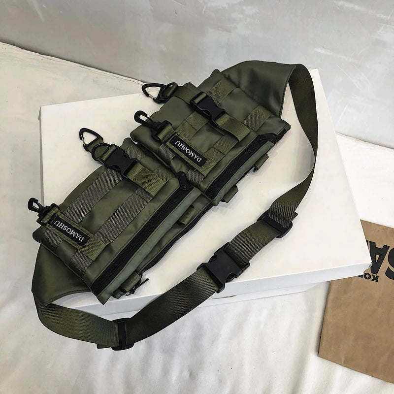 This versatile waist pack is made of durable nylon material, featuring a solid color design. It can be worn as a crossbody bag or on the shoulder, perfect for workwear or casual outings.