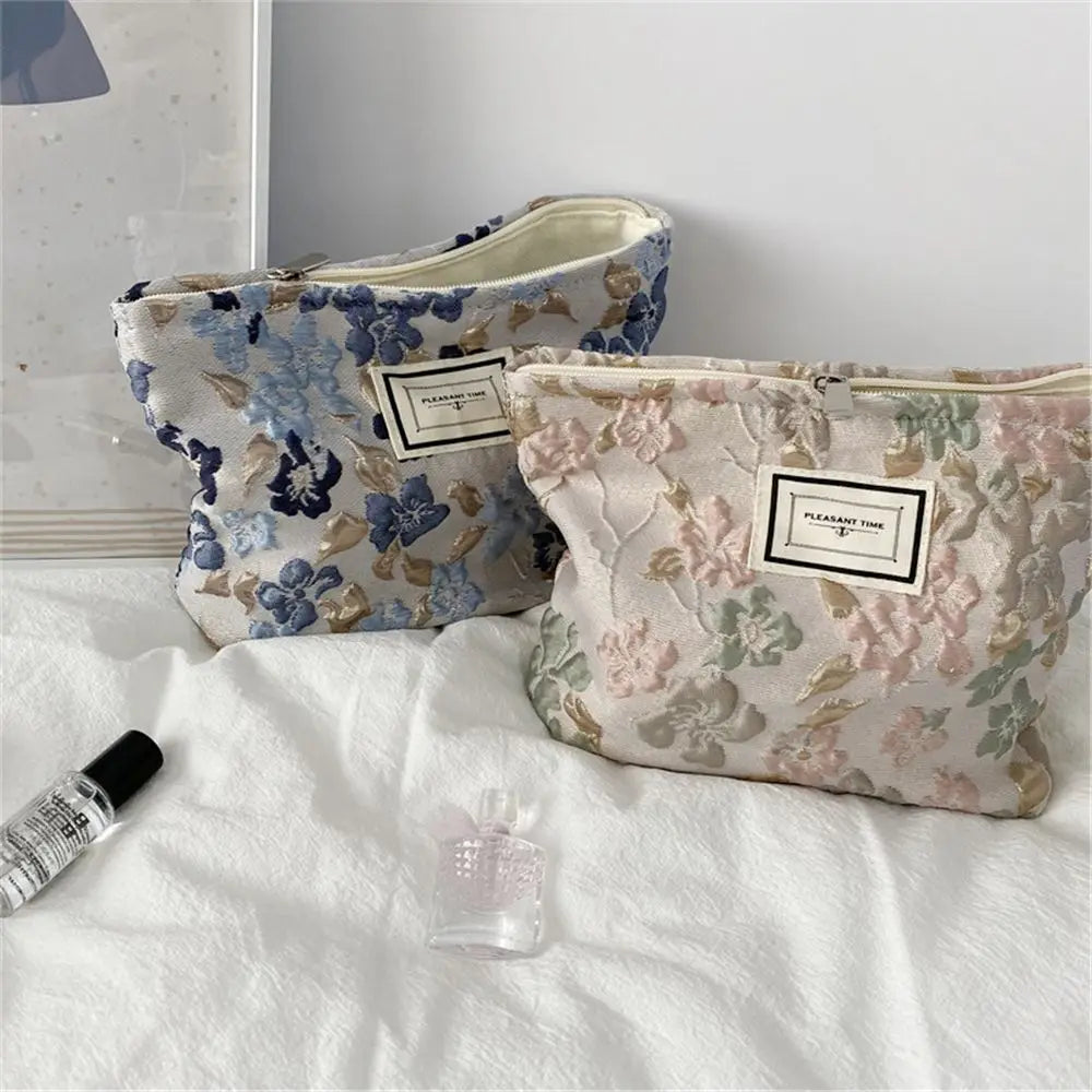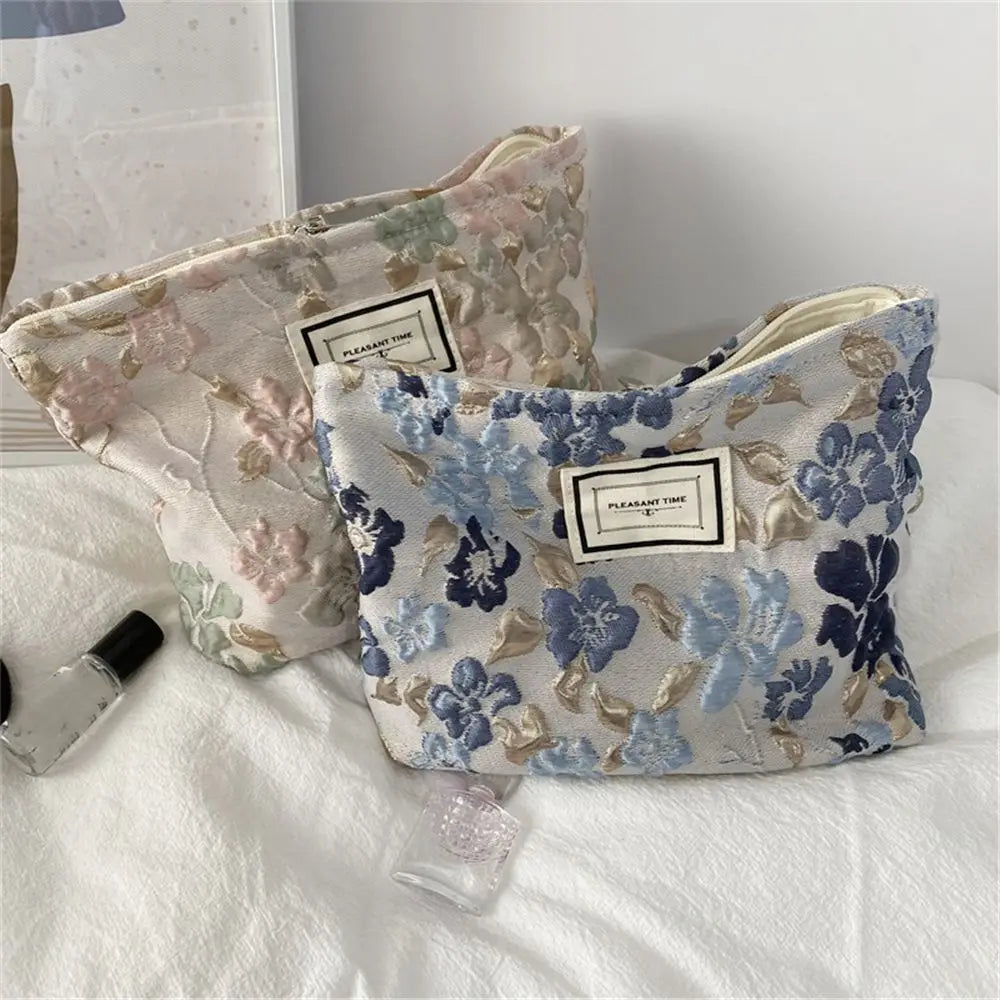 This portable leisure handbag features a stunning embossed flower design, ideal for carrying cosmetics, mobile phones, and other essentials.