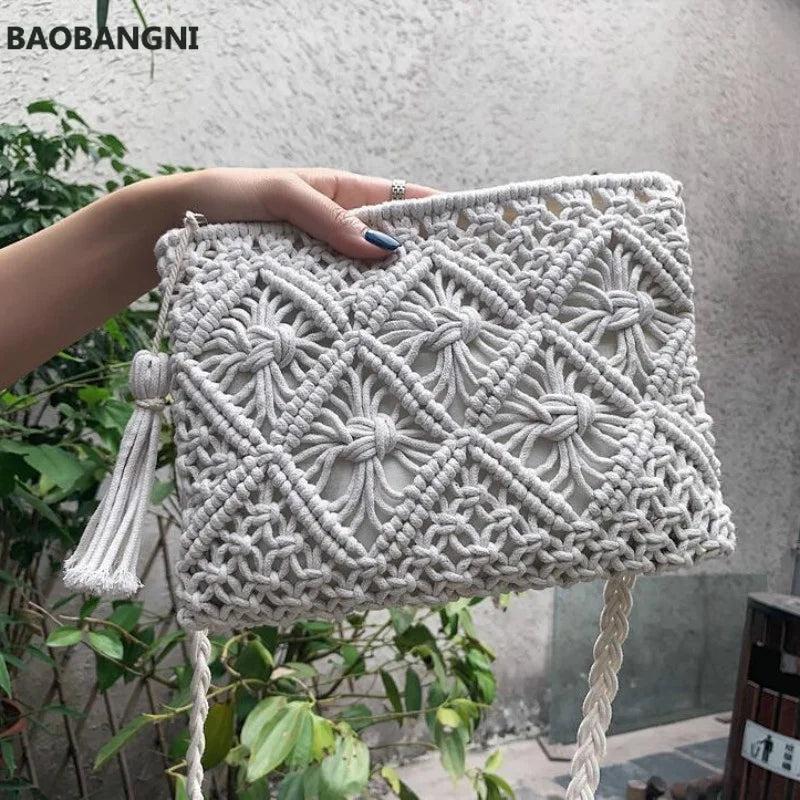Description:This stylish messenger bag is made from cotton rope with fringed detailing, perfect for carrying your essentials in style.Features: Made from high-quality cotton rope Features fringed detailing for a trendy look Can be worn as a shoulder bag or crossbody bag Spacious enough to carry your essentials Ideal for everyday...