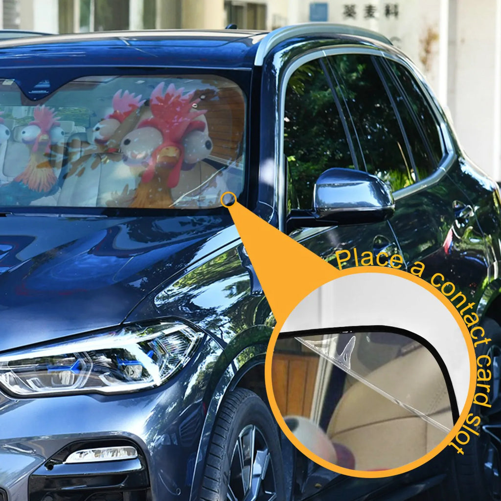 Keep your car cool and add some humor with this funny chickens and roosters sunshade. It effectively blocks out the sun to protect your car's interior.