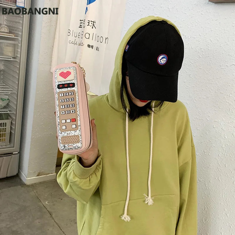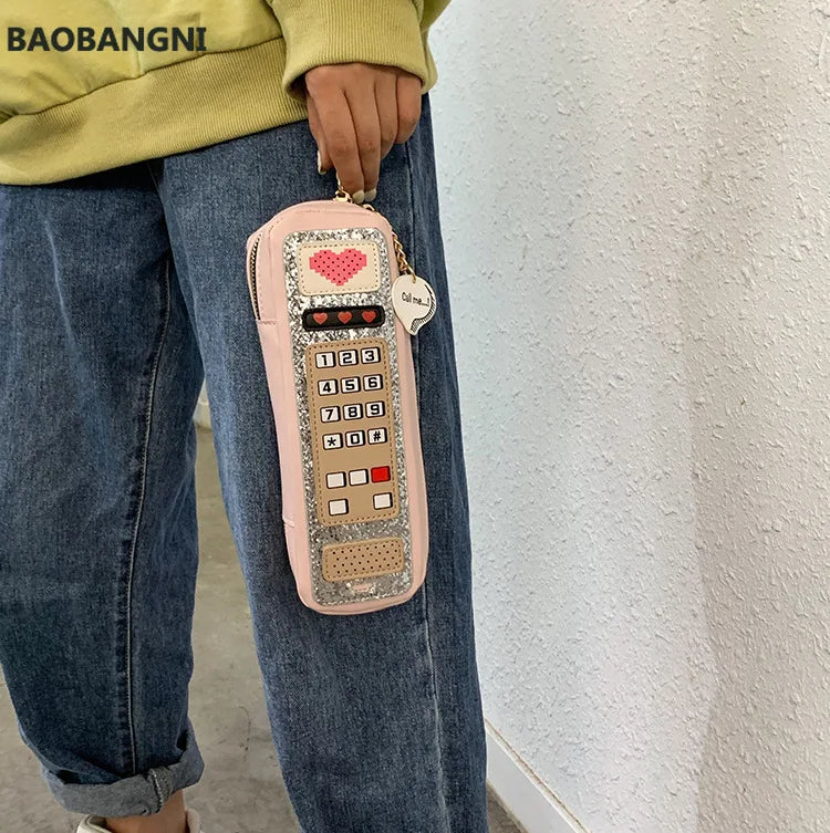 Stay stylish and unique with this European and American sequin mobile phone small bag designed for girls with a creative personality.