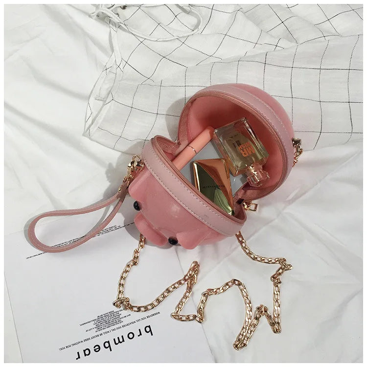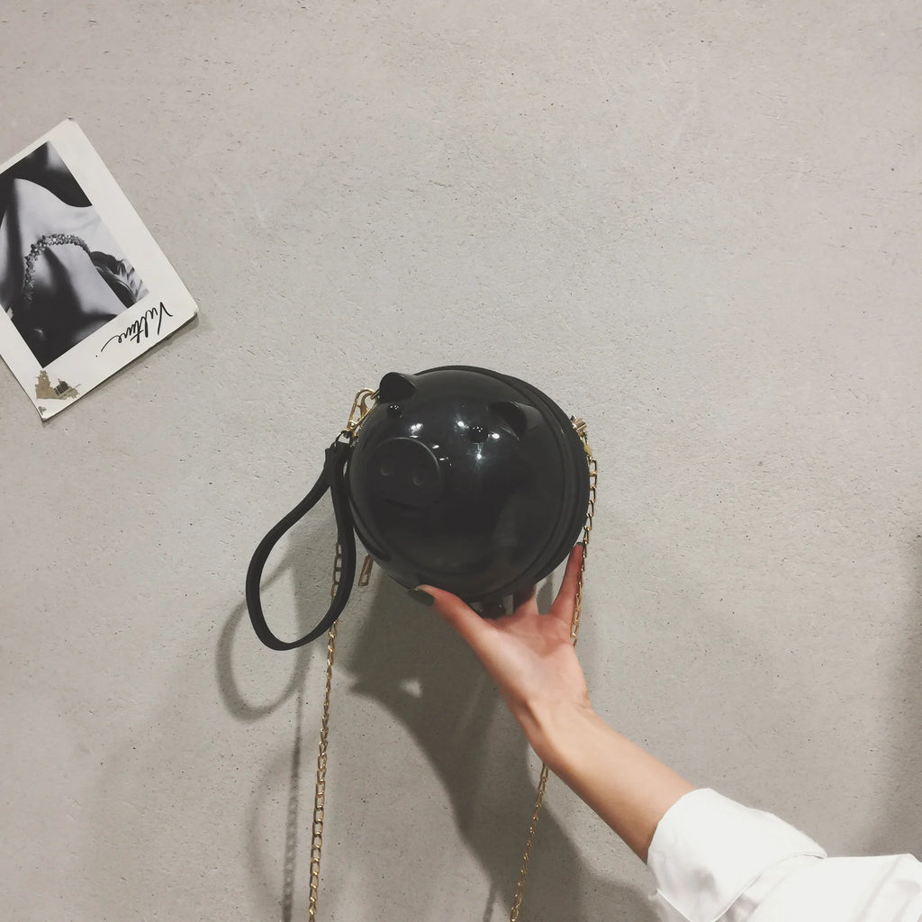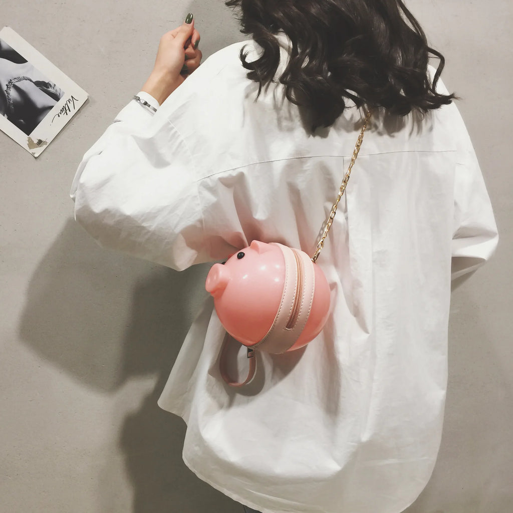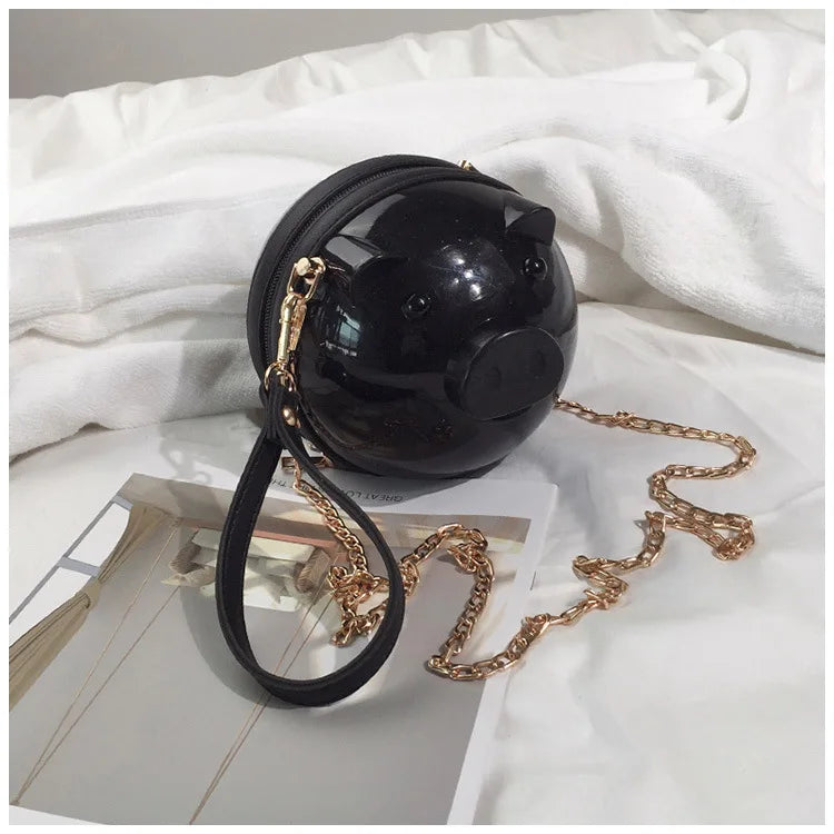 This cute and unique pig-shaped plastic jelly bag is a perfect accessory for summer. It features a shoulder chain for easy carrying and adds a touch of whimsy to your outfit.