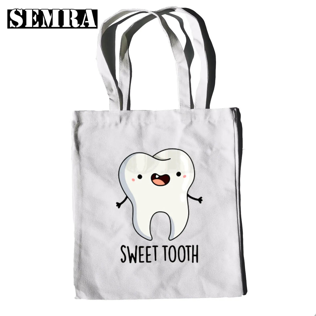 Funny Tooth & Dentist Graphic Canvas Print Shopping Bag