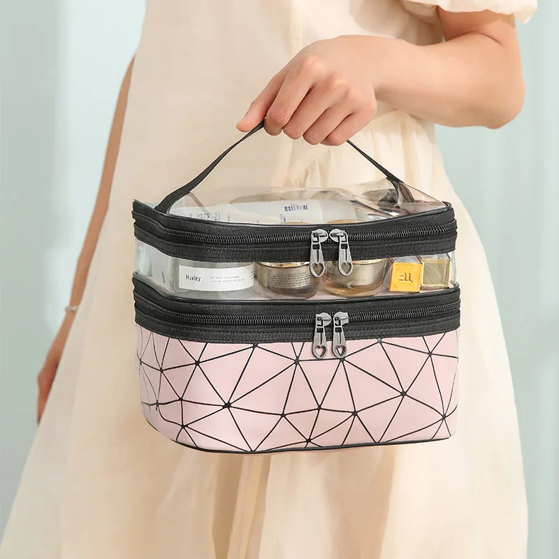 Gena's PU Cosmetic Bag Double Layer Travel Wash Bag