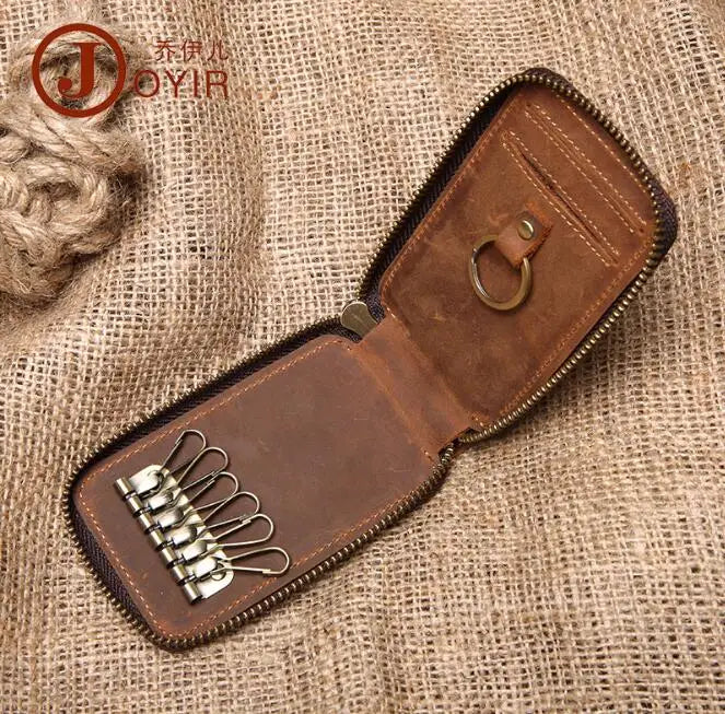 Genuine Leather Car Key Case Retro Style Crazy Horse Leather