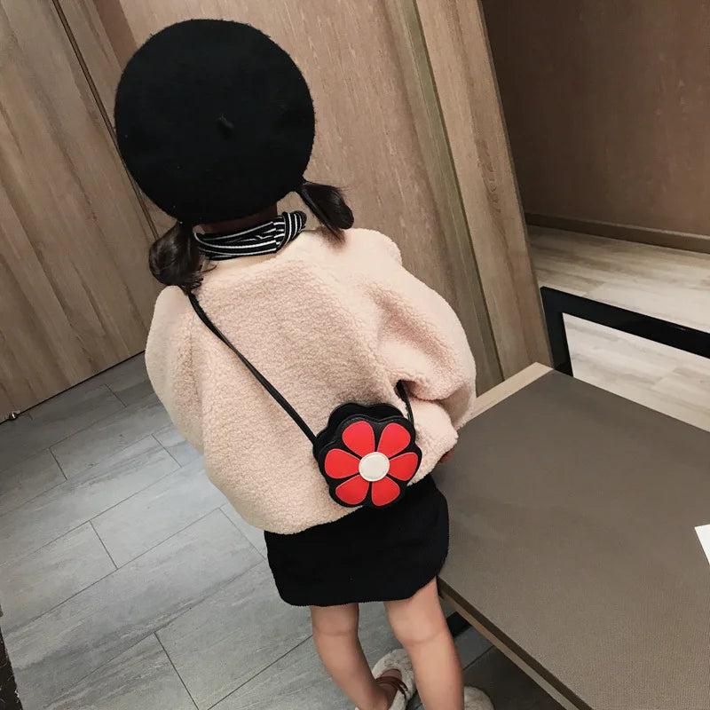 This adorable Children Cylinder Crossbody Bag is perfect for girls. Made of soft leather and adorned with a flower design, it's a mini shoulder bag that your child will love.