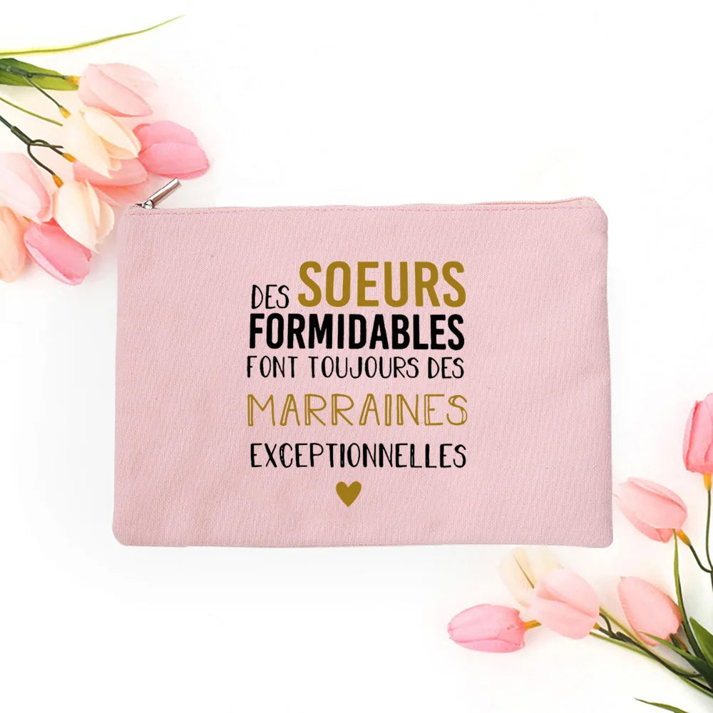 This stylish makeup bag is the perfect gift for asking someone to be your beloved godmother. It is great for storing cosmetics, toiletries, and other essentials while on the go.