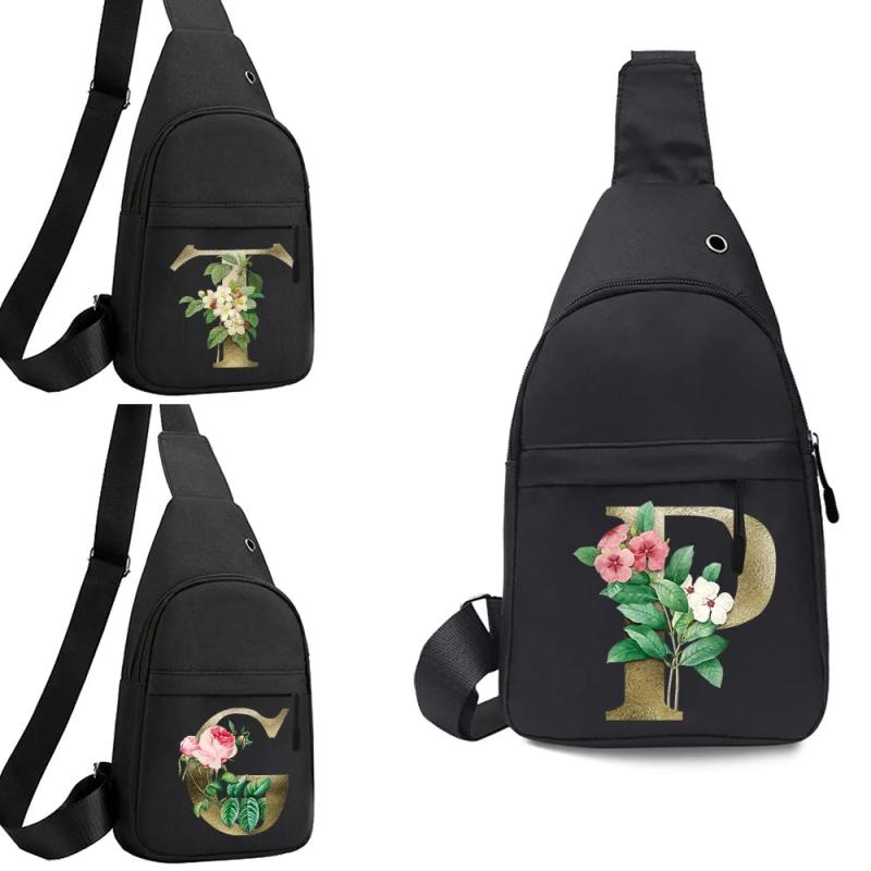 Golden Flower Letter Print Waist Pack Crossbody Chest Bag Unisex Hip Bum Bag