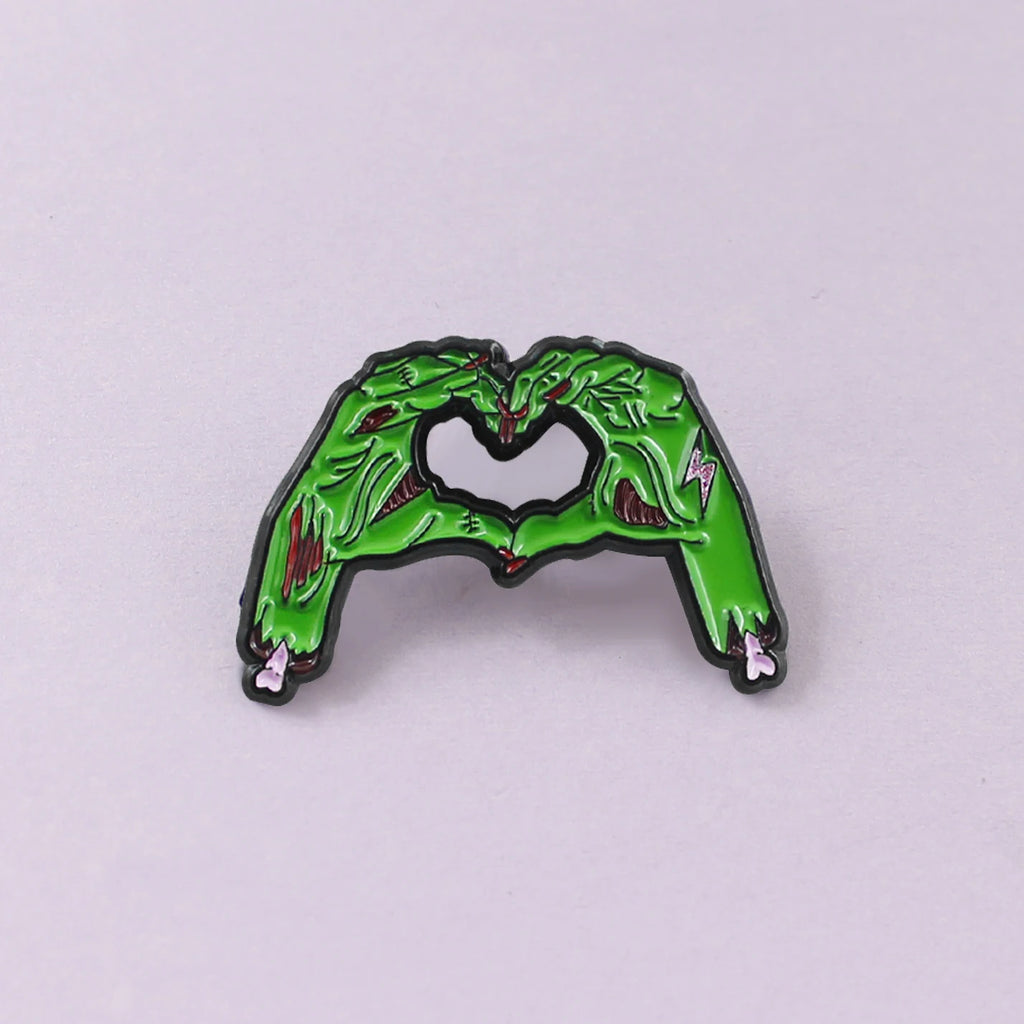 Green Skull Hands Skeleton Brooch Enamel Pin Gothic Halloween Jewelry