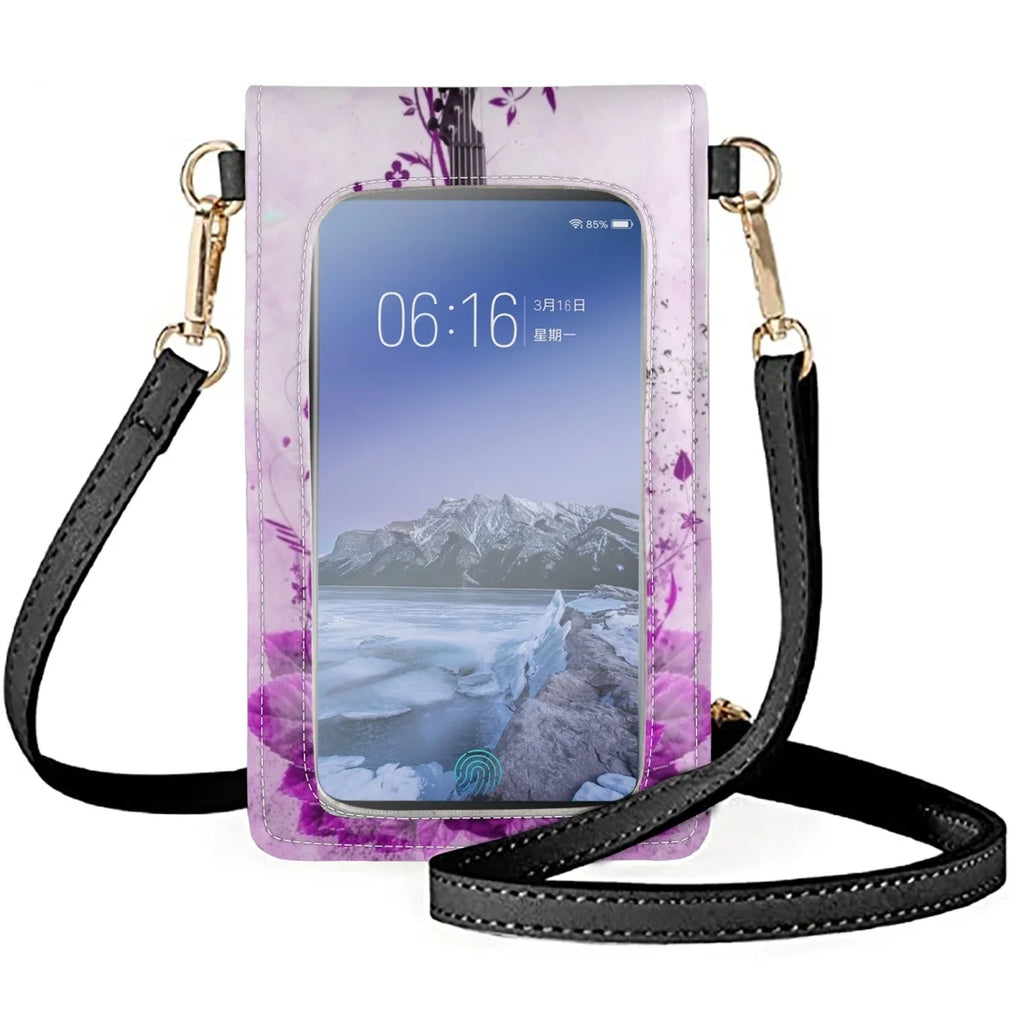Guitar Bass Pattern Phone Bag Rose Shoulder Ladies Travel Pouch