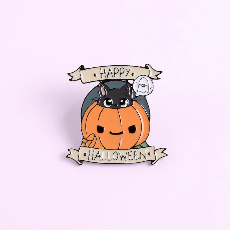 Halloween Pumpkin Enamel Pin Cat Lapel Cartoon Badges