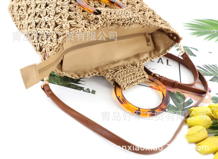 Hand-held Paper Rope Crochet Bag Shoulder Woven Beach Messenger Bag