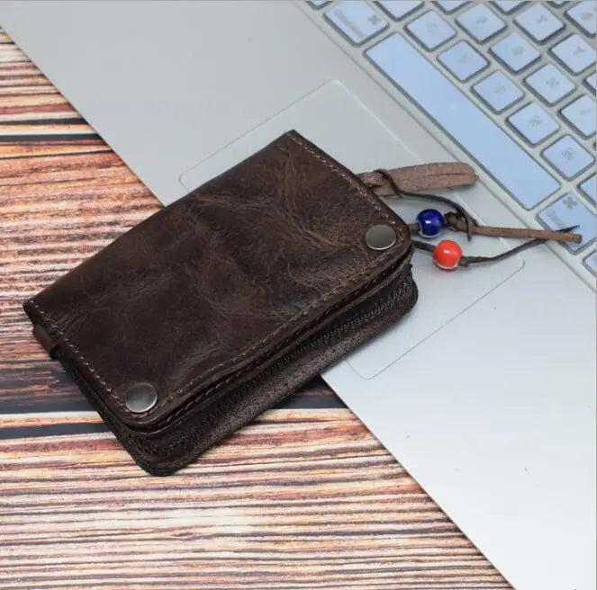 This driver's key case is made from cowhide, hand-painted, and has a worn look. It offers a unique blend of style and functionality.