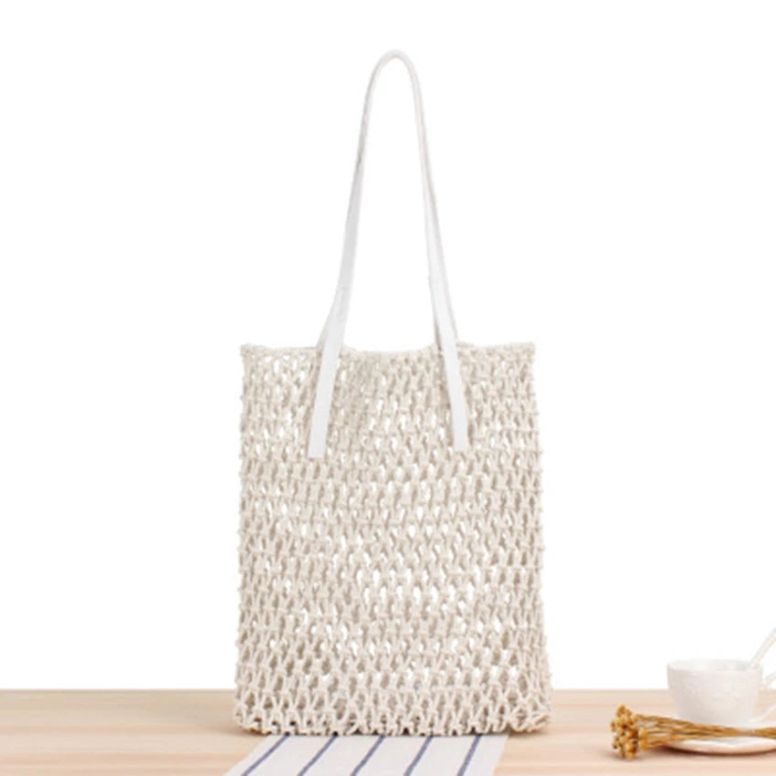Hand-Woven Leather Bag College Wind Cotton Rope Beach Bag