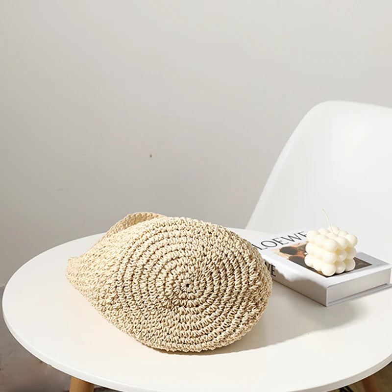 Hand-Woven Straw Bucket Bag Seaside Beach Vacation