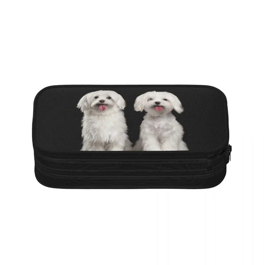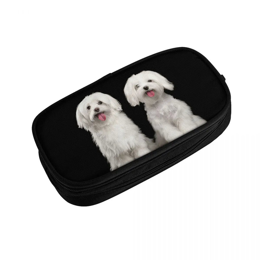 Adorable pen bag featuring two happy Maltese dogs sitting in a pen box design. Perfect for students, anime lovers, and as a gift for children.