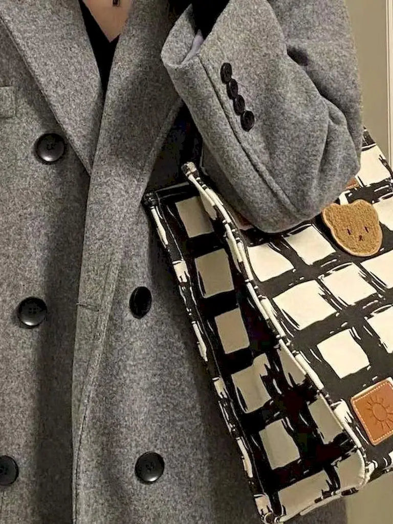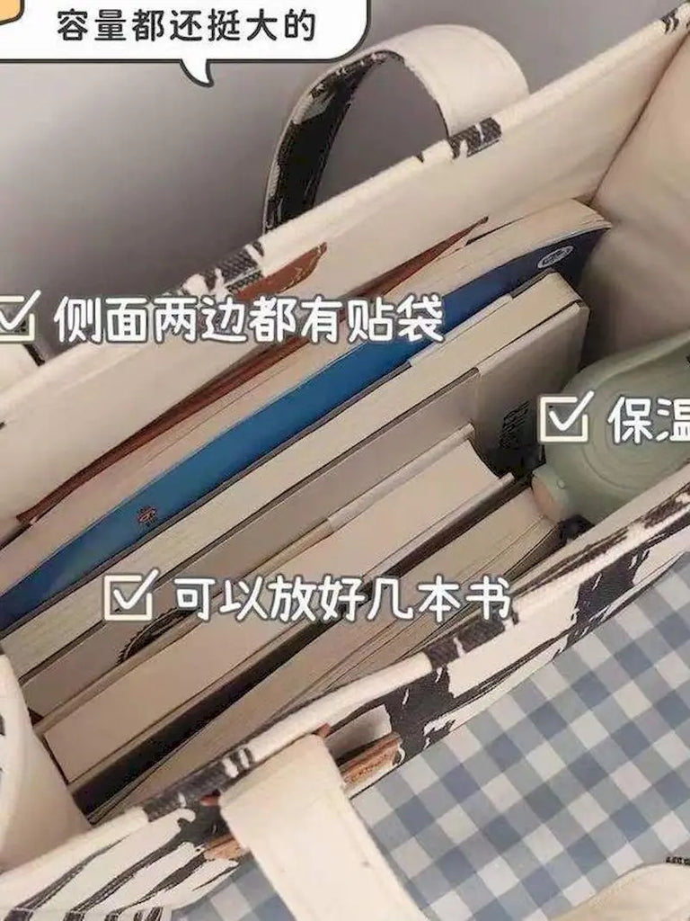 Harajuku Spring High-end Geometric Pattern Large-capacity Canvas Tote Bag