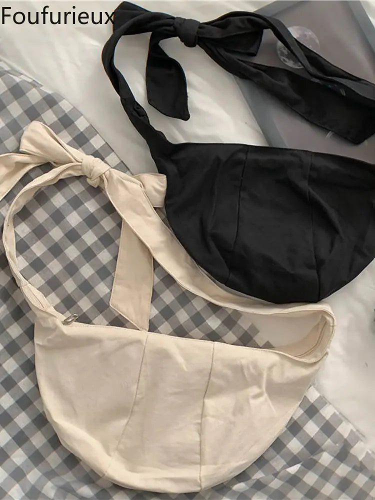 Harajuku Style Canvas Dumpling Bag Solid Color Large Capacity Crossbody Bag