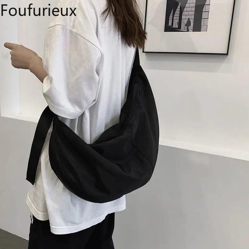 Stay stylish and organized with this large capacity shoulder bag. Harajuku-inspired design made from waterproof Oxford material.