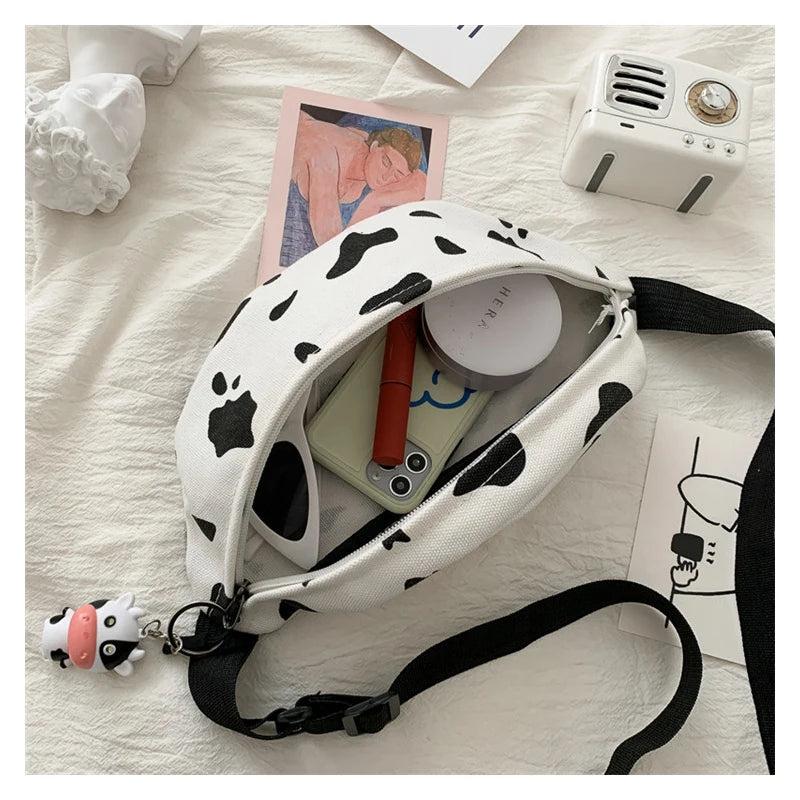 This waist bag is made of cow canvas and features a Harajuku style design. It is a versatile accessory that can be worn as a messenger bag or fanny pack, perfect for students or sports enthusiasts.