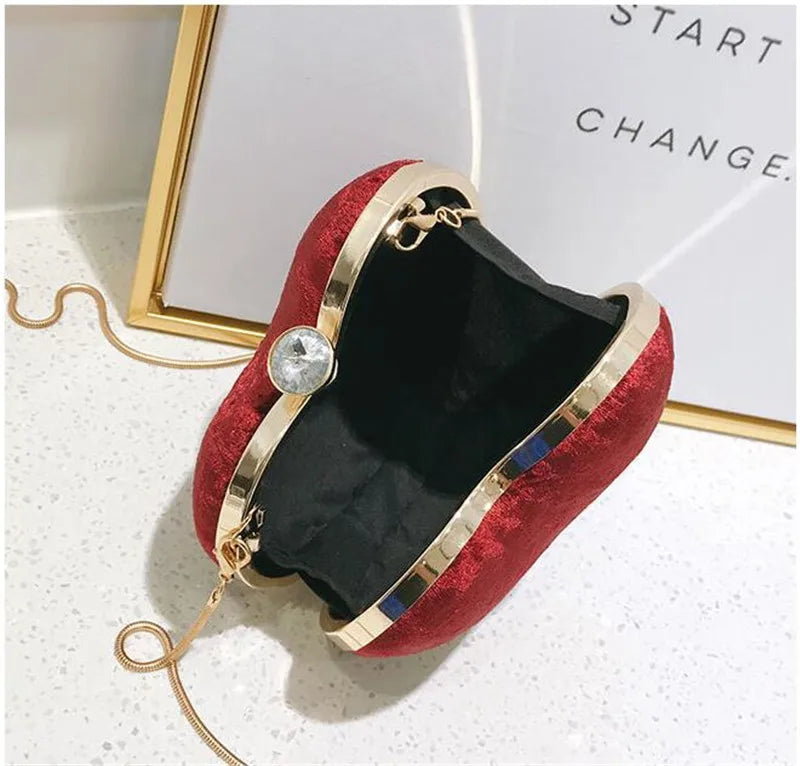 Heart Shaped Red Evening Bags Chain Clutch Purse MN1245