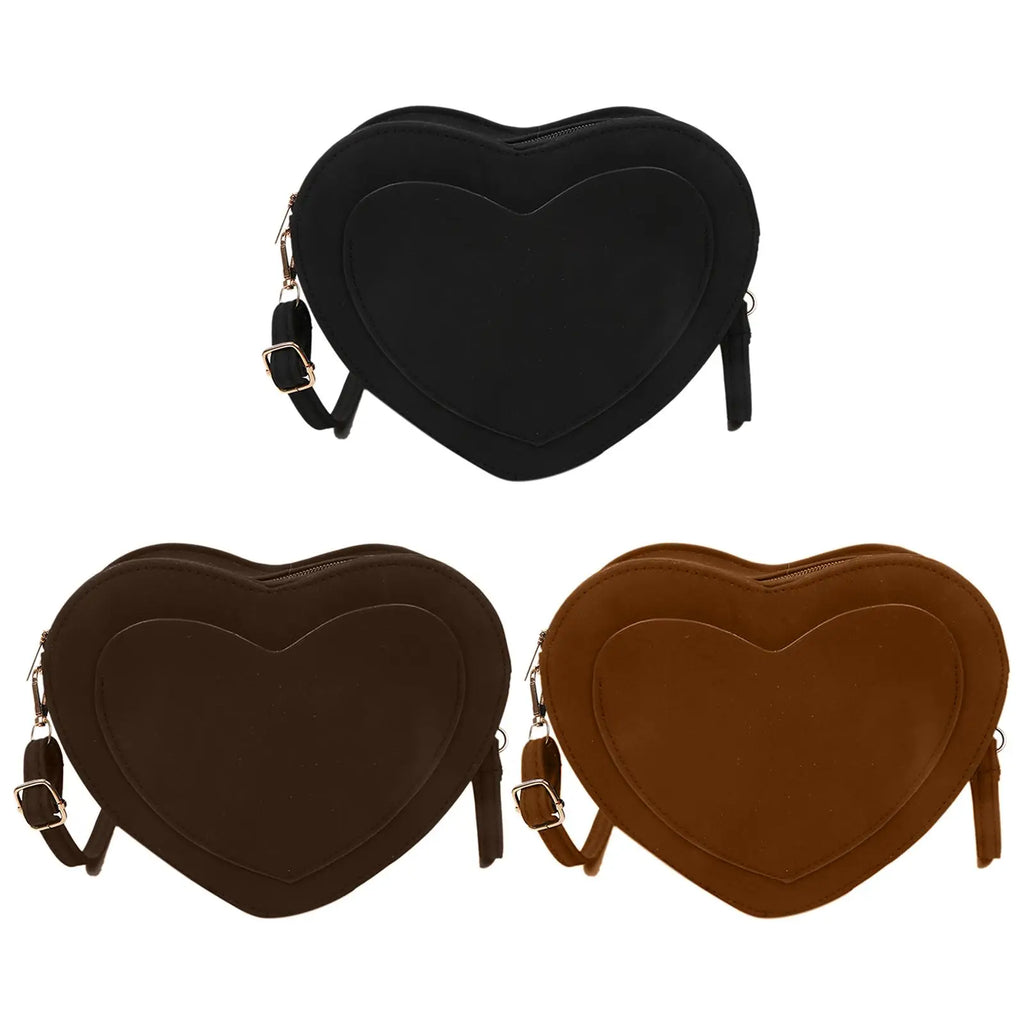 Adorable heart-shaped shoulder bag with zipper closure made of high-quality PU leather, perfect for daily use.