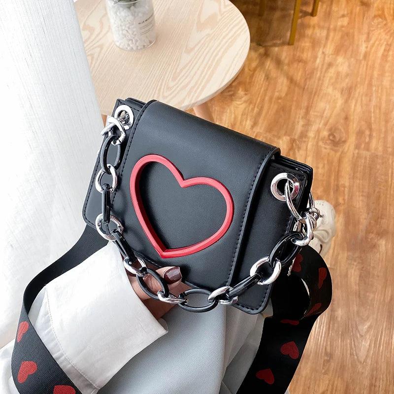 Heart Wide Shoulder Strap One Shoulder Bag For Girls Chain Hangbags