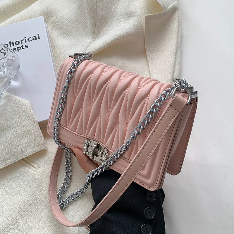High Embroidery Thread Chain Shoulder Bag Small Square Crossbody Purse