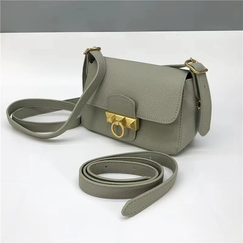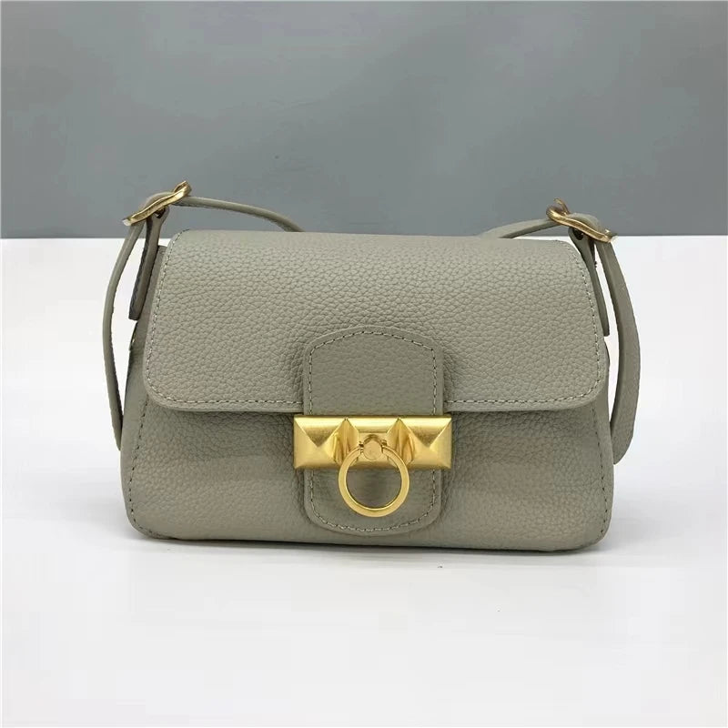 High Female Layer Cowhide Texture Shoulder Bag Purse Leather Small Square