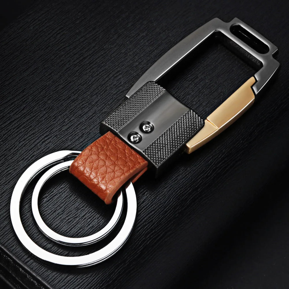 - High-grade leather keychain with alloy accents