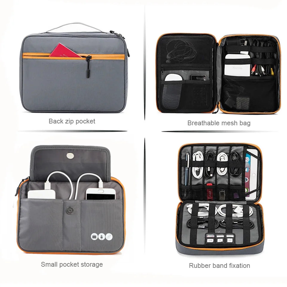 This travel gadget carry bag is designed to perfectly fit an iPad. It features high-grade nylon material and has 2 layers for efficient organization of electronic accessories during travels.