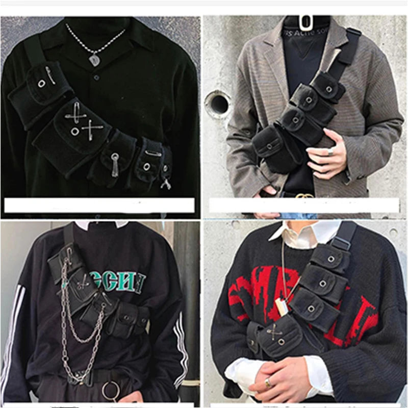This hip hop chest bag is perfect for streetwear style enthusiasts. It features multiple pockets and is ideal for travel, carrying your phone, and more.