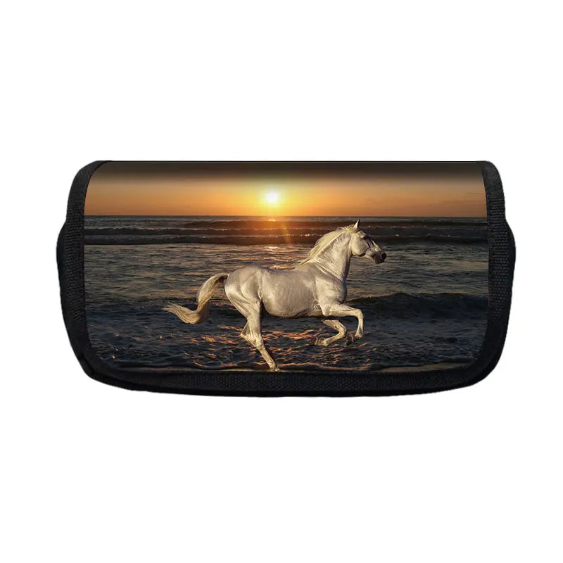 Keep your pens and pencils organized with this horse print pencil case. Ideal for school or work, this spacious bag can hold all your writing supplies in one place.
