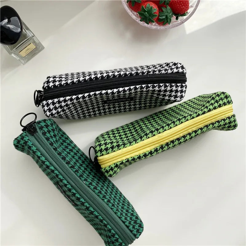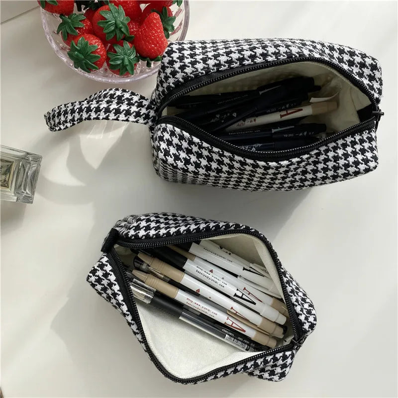 Houndstooth Cosmetic Bag Zipper Small Storage Girls Pencil Case Makeup Bags
