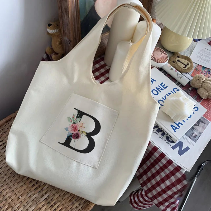 Initial Letter Pattern Print Shoulder Bag Soft Commuter Tote