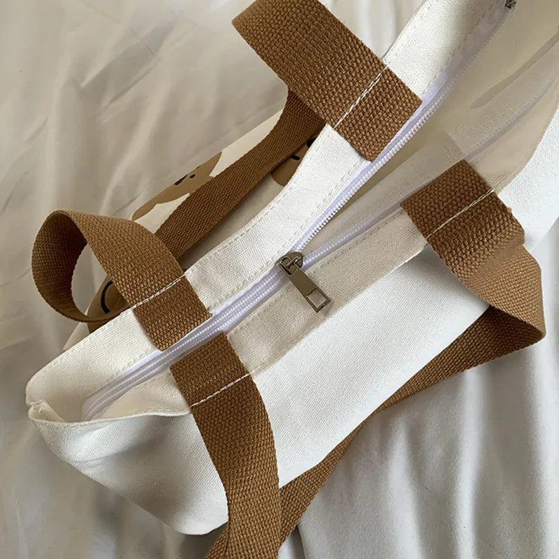 Ins Korea Canvas Bag Female Shoulder Convenient Shopping Cartoon Student