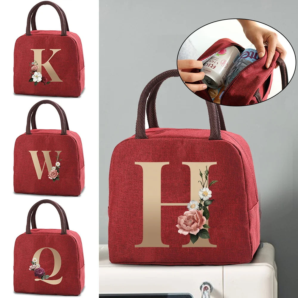 Insulated Lunch Bag Initials Print Food Storage Bento Pouch