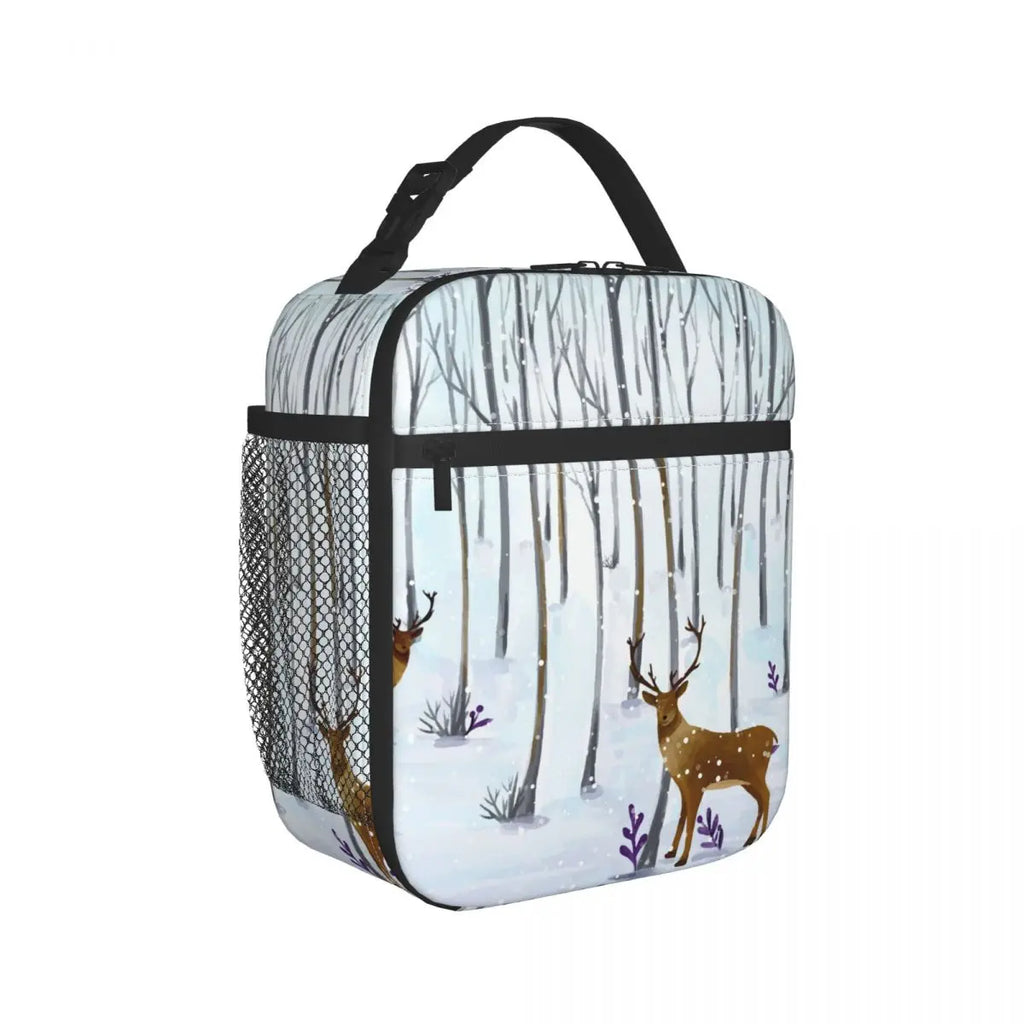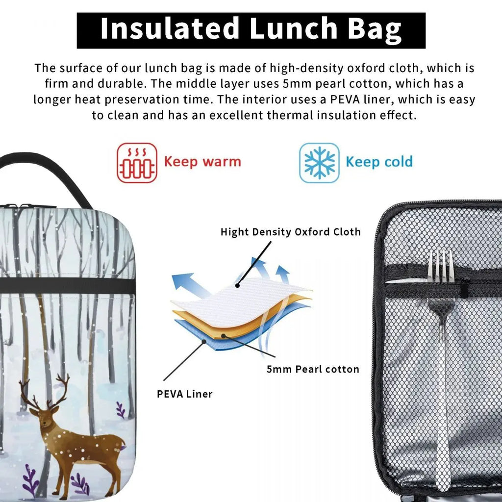 Insulated Lunch Box Deer Forest Cooler Bag Leak-proof Lunch Tote Wine Bag