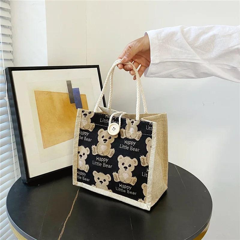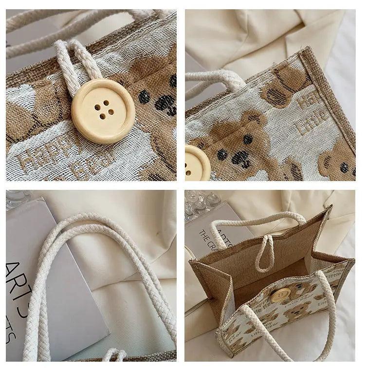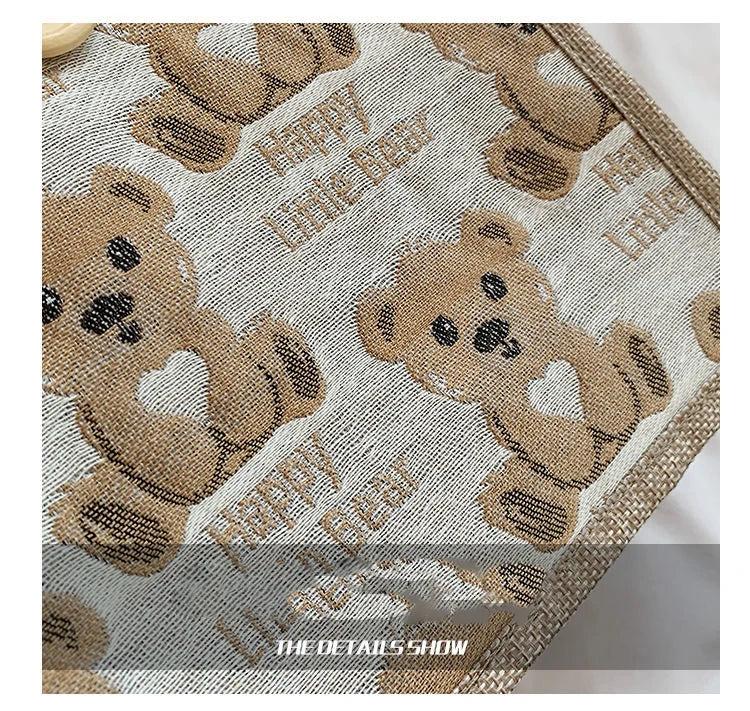 This cute bear linen tote bag is perfect for female outings. It features a small shoulder bag design ideal for students and internet celebrities.