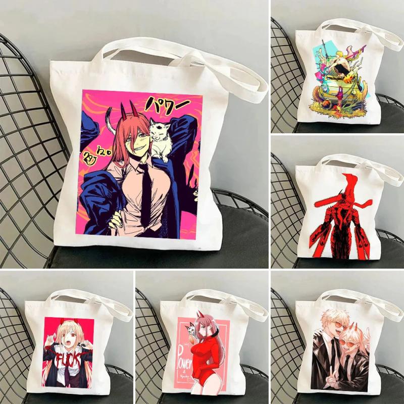 Japanese Chainsaw Man Evil Power Cat Canvas Shoulder Bag Harajuku Shopper