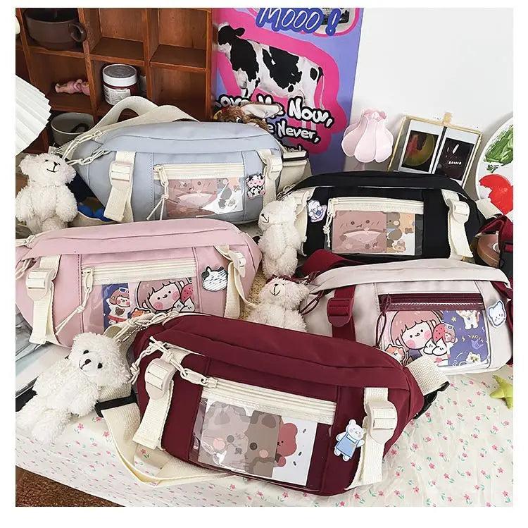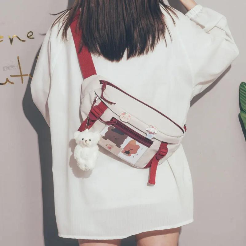 Elevate your style with this Japanese-inspired chest bag made for the modern girl on the go. Perfect for students, this casual and compact bag adds a touch of Harajuku flair.