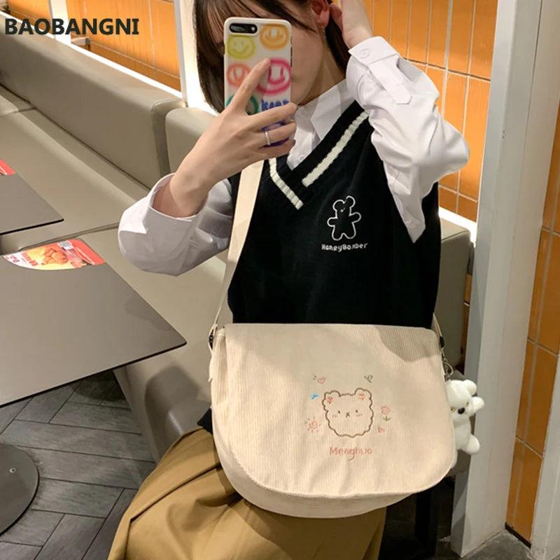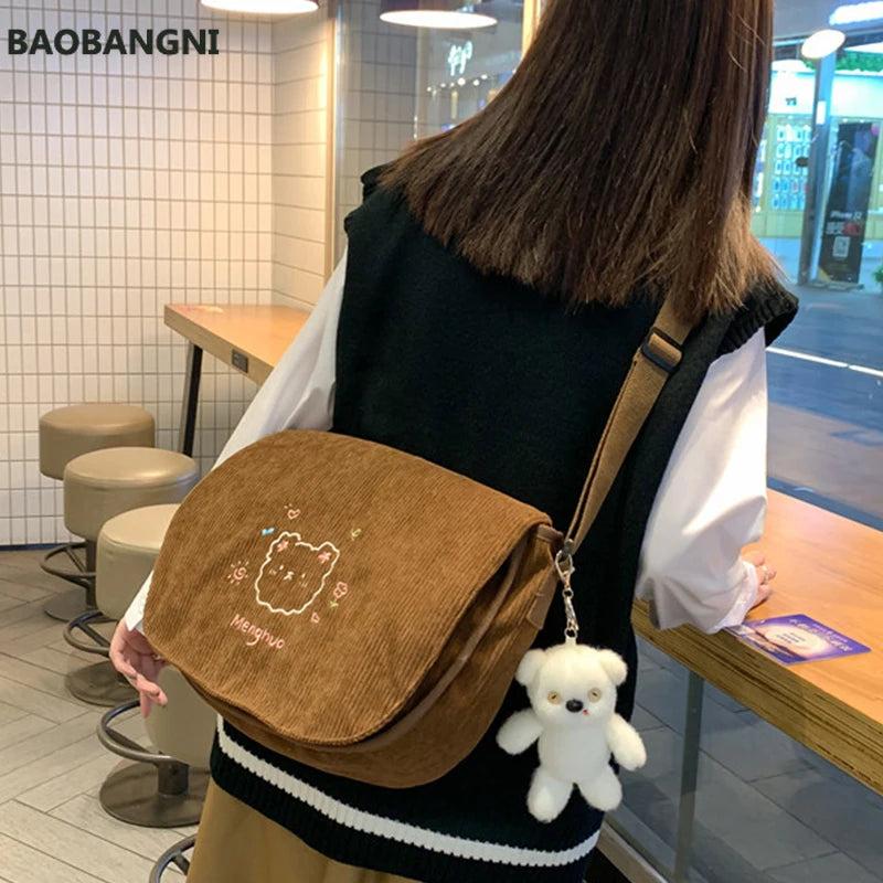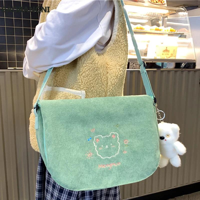 Japanese Corduroy Shoulder Bag Waterproof Student Schoolbag