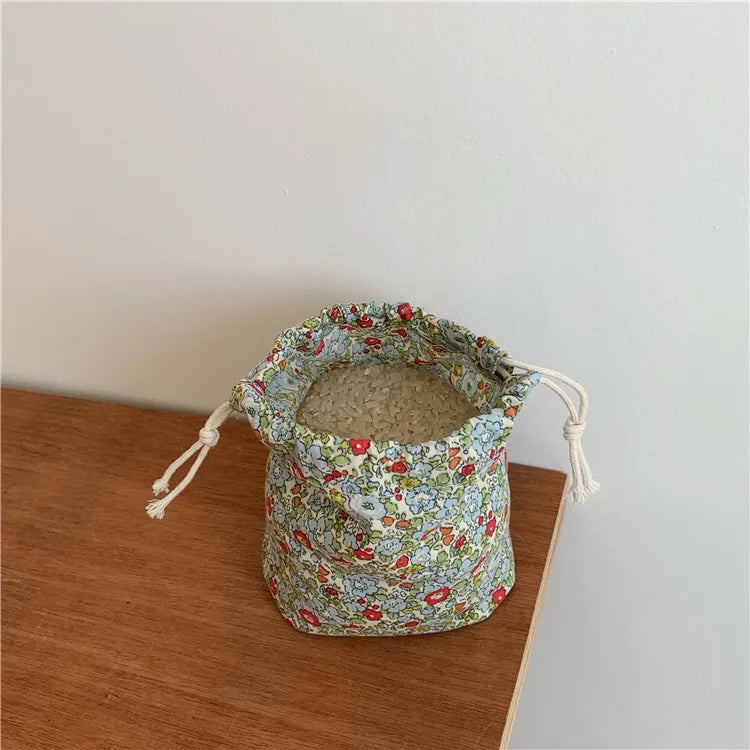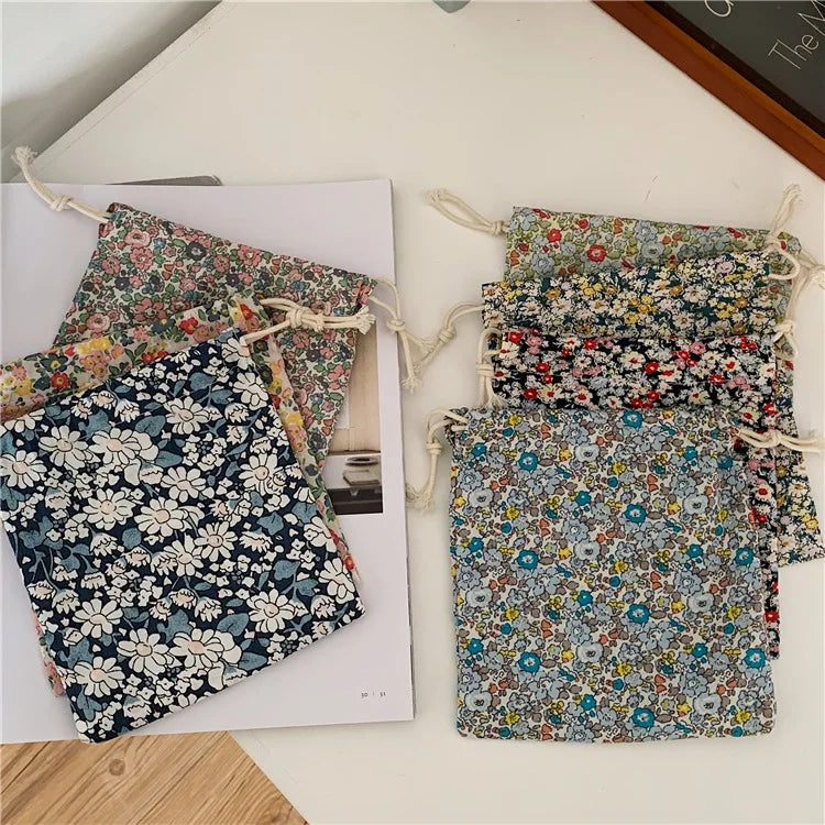 Japanese Floral Drawstring Bag Cotton Fabric Christmas Gift Bag