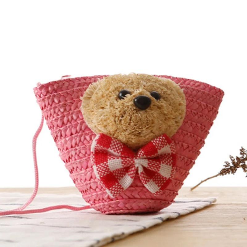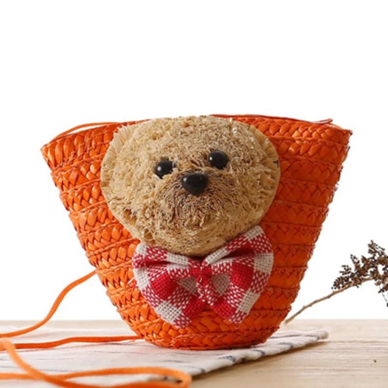 Adorable and practical Japanese bear head bow knitting bag perfect for keys, coins, and small essentials. Great for beach trips or as a shoulder messenger bag.