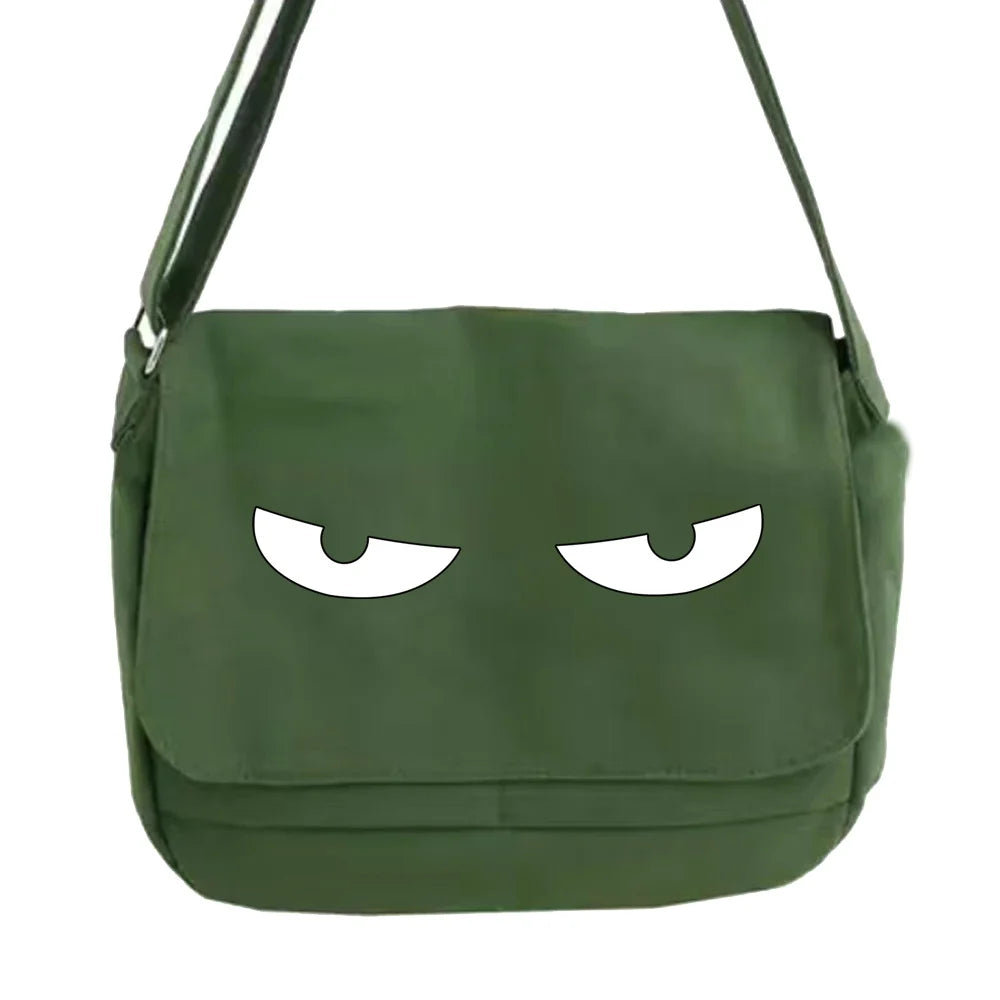 This messenger bag combines functionality and style for students. It features a single shoulder strap and is designed with a literature-inspired theme.