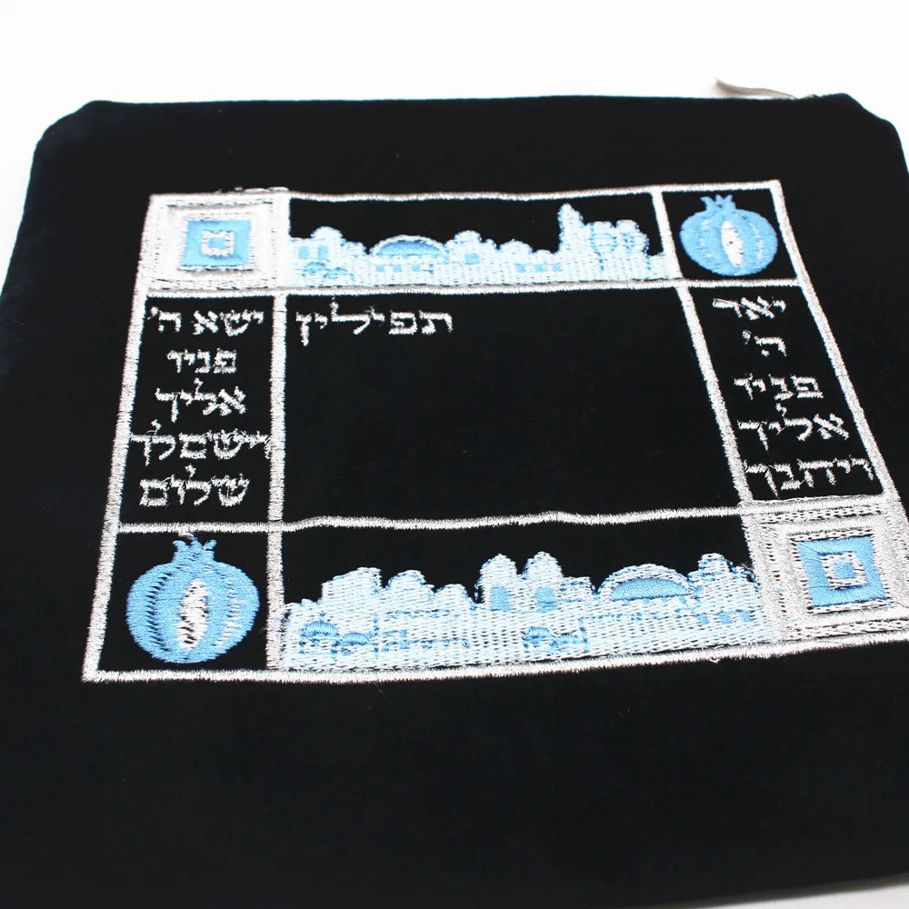 - Velvet Tefillin bag with Jerusalem embroidery