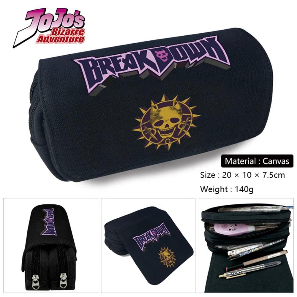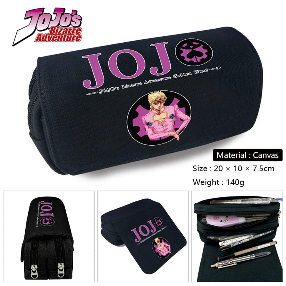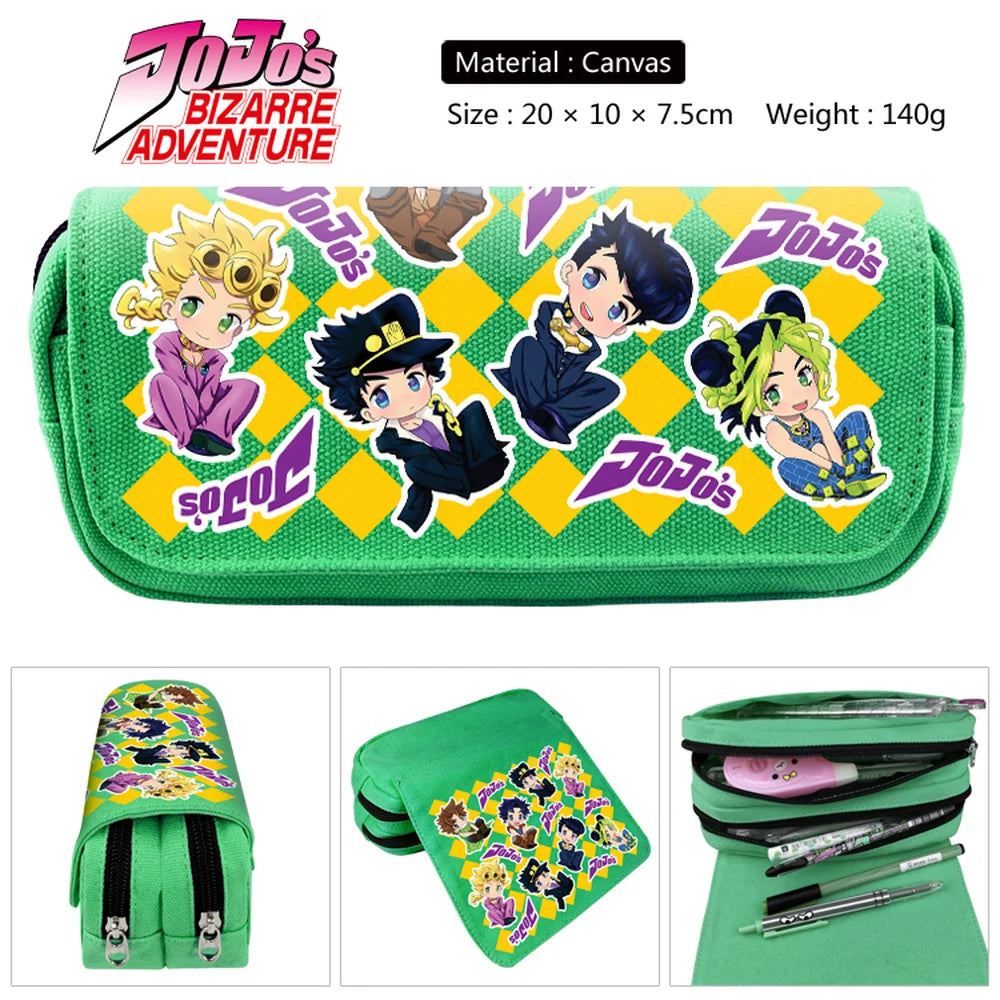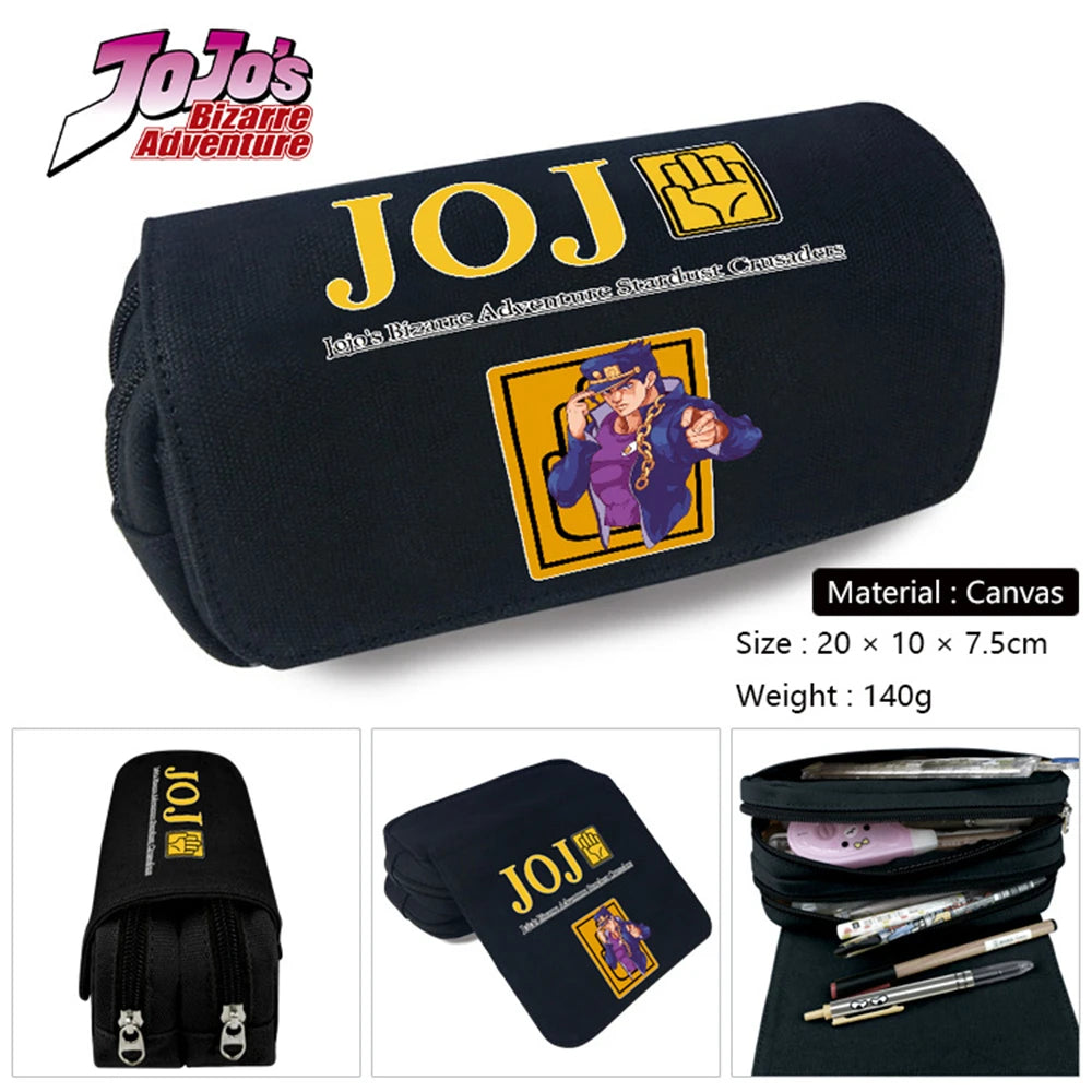 This canvas pencil case featuring characters from JoJo's Bizarre Adventure is perfect for both boys and girls. It can be used for stationery, makeup, or travel essentials.