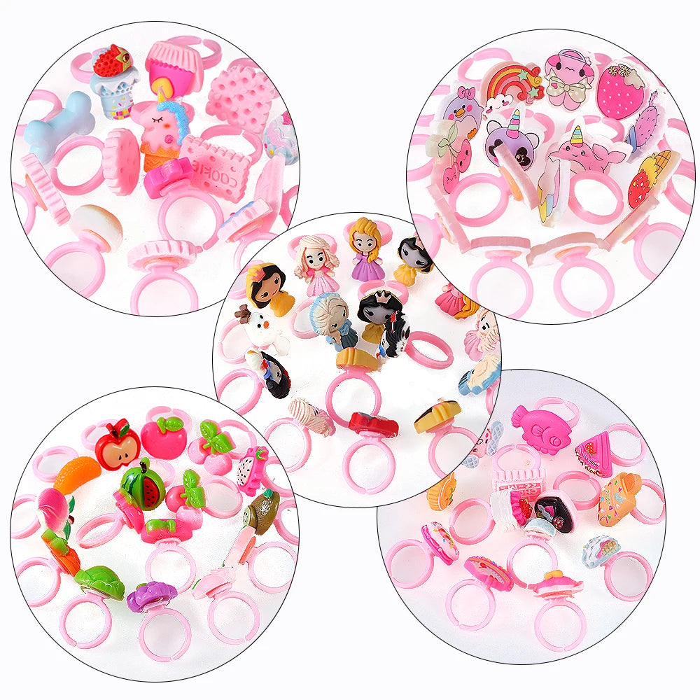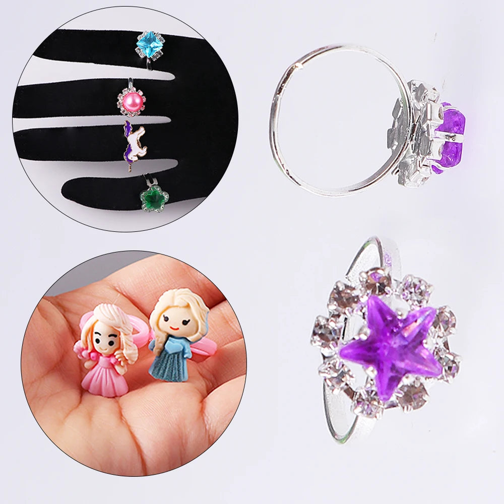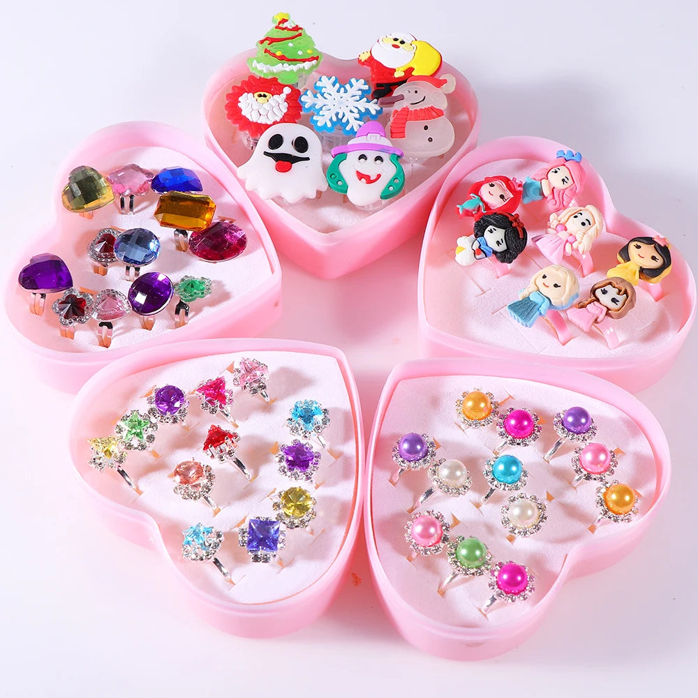 Kids Adjustable Cartoon Girl Rings with Heart Shaped Showcase