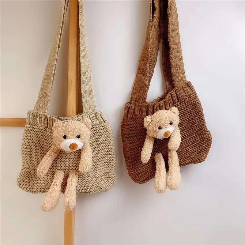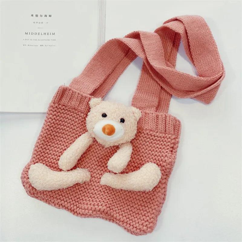 This adorable coin purse bag is perfect for children and features a cute cartoon animal knitting bear design. It's small and compact, making it ideal for storing coins and small treasures.