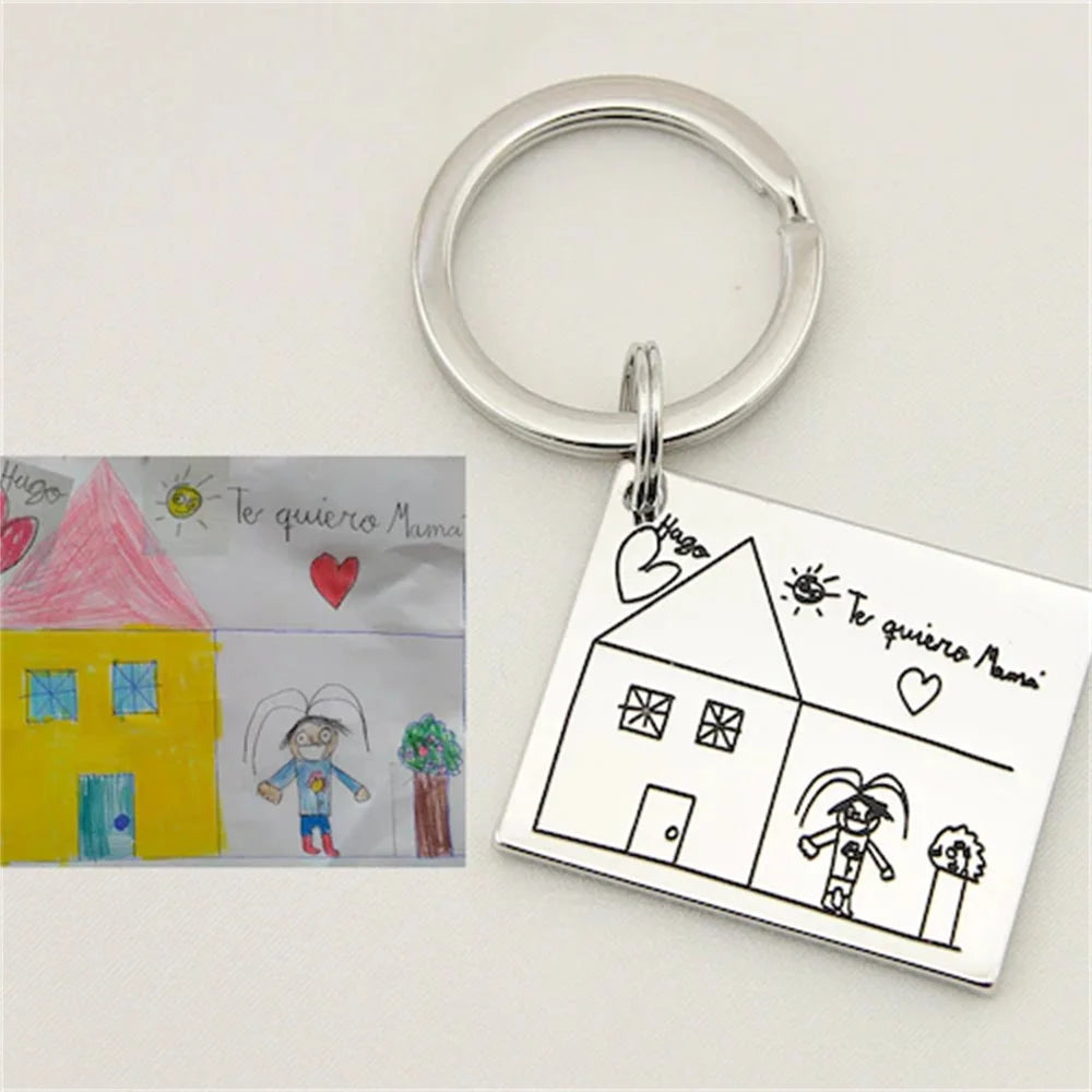 Capture your child's creativity with this stainless steel keychain featuring their unique art. Perfect gift for parents, grandparents, or special occasions.